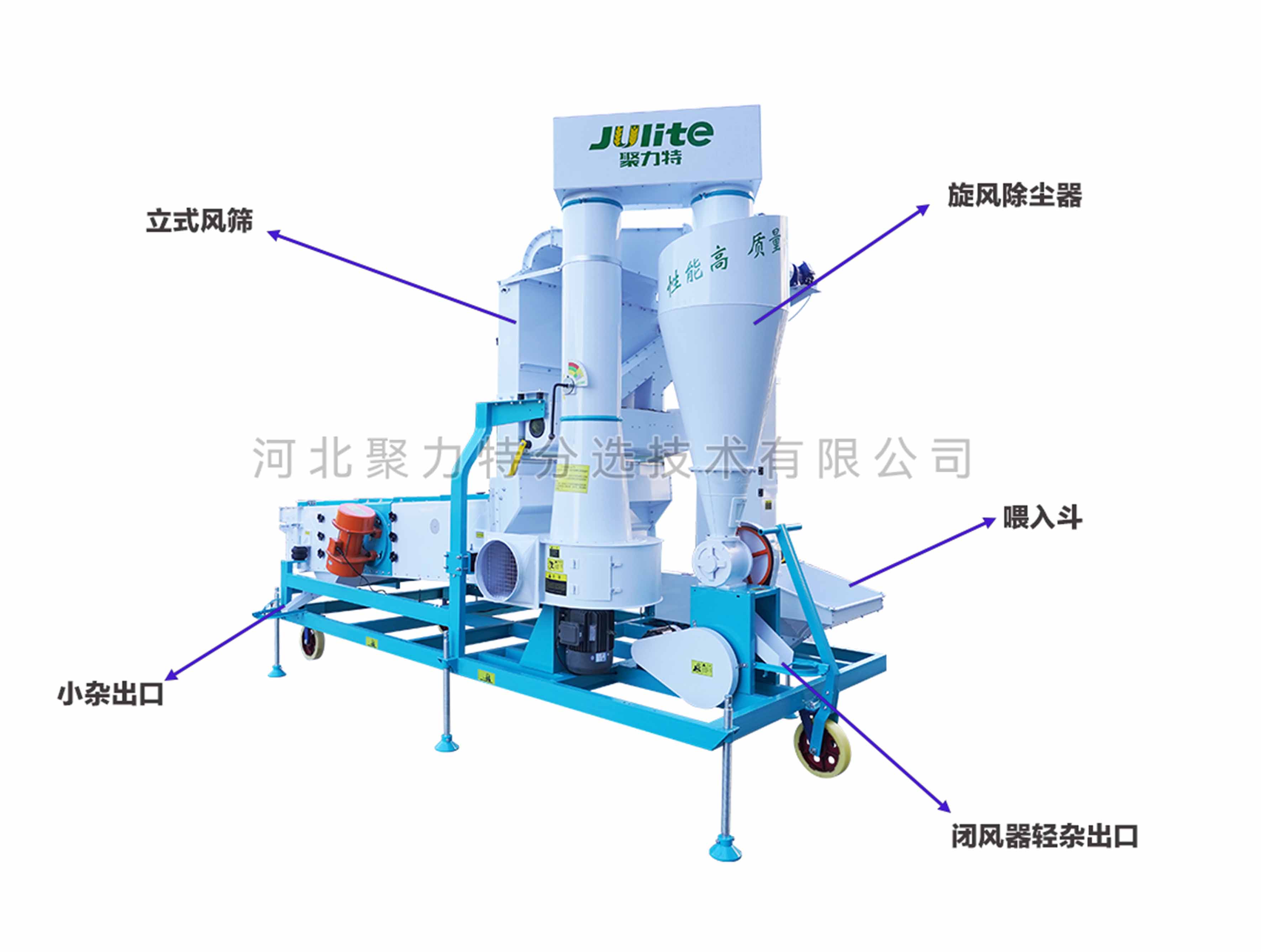 5、出糧口可更換: 主出糧口標(biāo)配為無擋板大口,便于后序提升機(jī)的連接,并可根據(jù)實(shí)際使用需求選配裝有擋板的小出糧口。
